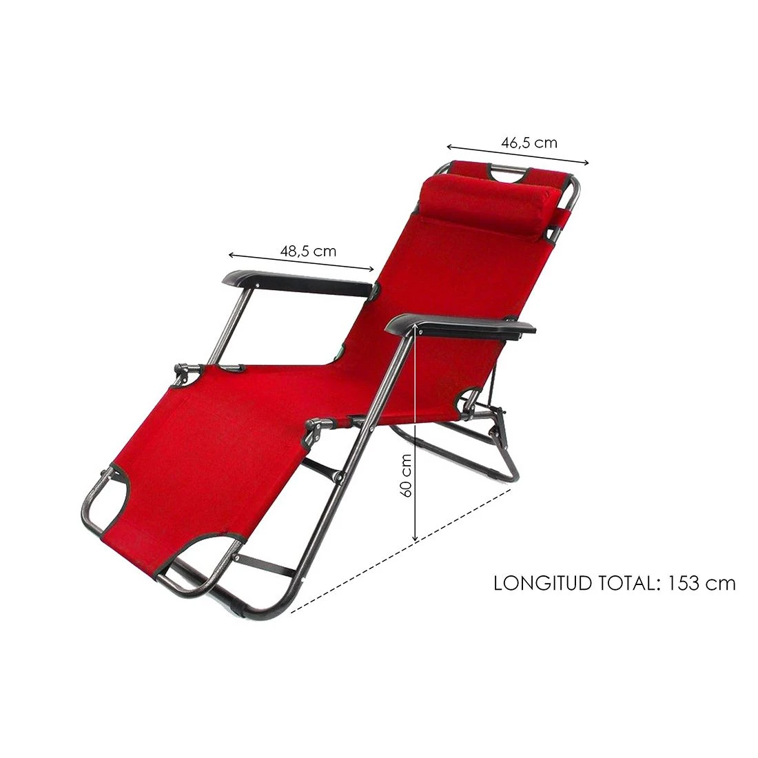 Medidas: silla reclinable y abatible con unas medidas de 153×46,5×60 cm