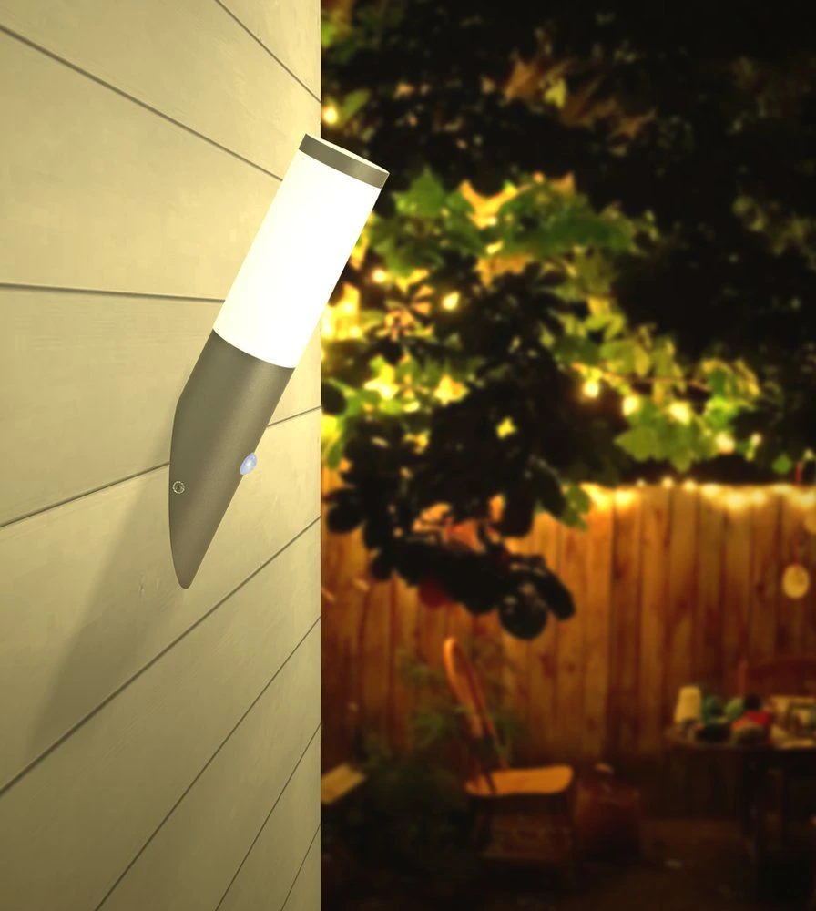 aplique en forma de antorcha para lámpara e27 (no incluido). Equipado con un detector de movimiento. Tecnología infrarroja, ¡la luz de la antorcha activa la iluminación solo cuando es necesario! Gracias a; su protección contra la intemperie ip44 y su diseño sobrio y limpio, podrás iluminar tu exterior con un toque de modernidad. acabado antracita.