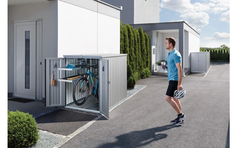 Baul arcon metalico minigaraje biohort jardin gris oscuro ancho 122 cmts x fondo 203 cmts x alto 145 cmts sin suelo