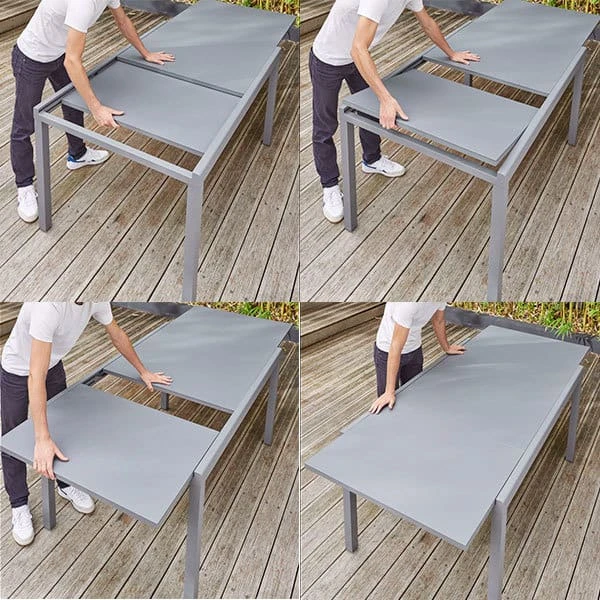 Mesa De Jardín Extensible Gris Moorea 75x90x140/200 Cm