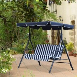 Columpio Balancín Jardín Outsunny Metal, Poliéster Y Tela Oxford Azul 172x110x153cm