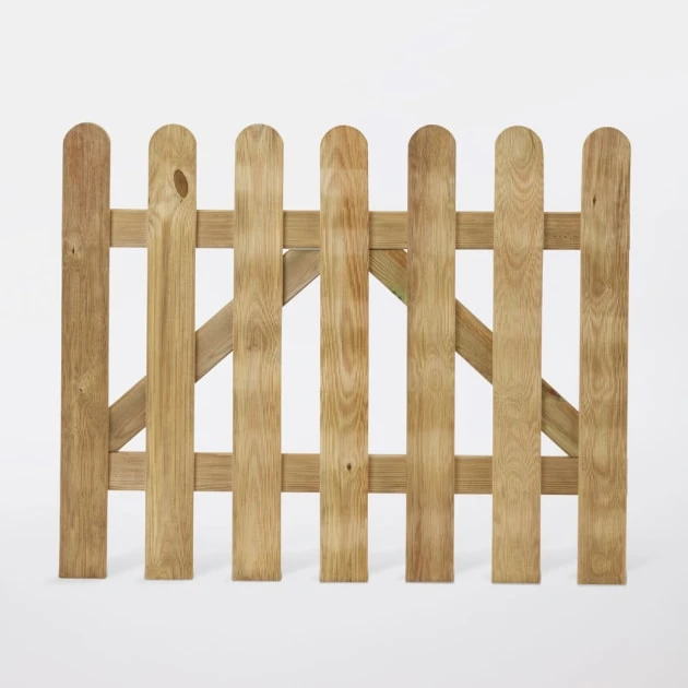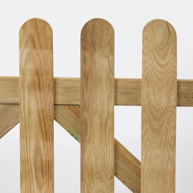 Puerta de madera de pino de la gama Liao, con tratamiento de Autoclave clase 3 para evitar que se pudra y con ello puedan aparecer hongos.Su diseño con borde redondeado la convierte en un elemento decorativo resistente. Además, es muy fácil de instalar y la madera ha sido tratada a presión para una larga duración. Esta puerta es perfecta para colocar en la valla de la misma gama Liao.