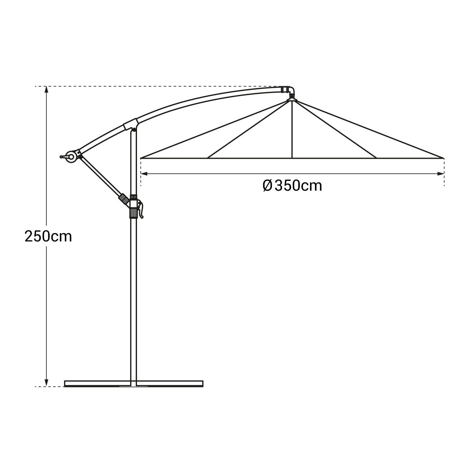 Sombrilla Excéntrica Oahu Redonda 3,50m De Diámetro Color Negro